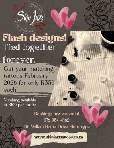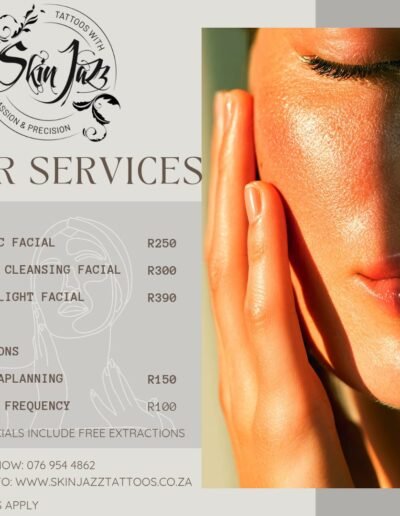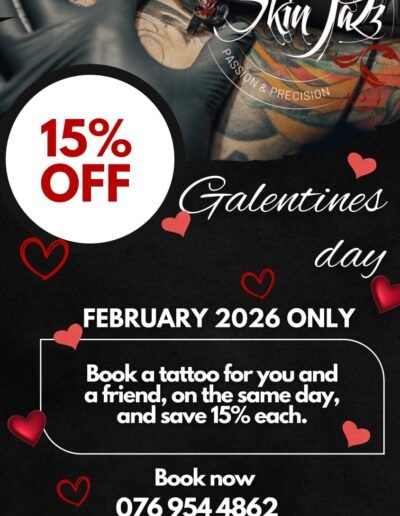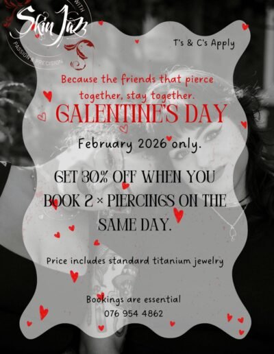 At Skin Jazz, our commitment goes beyond the ink, the piercings, and the beauty treatments. We pledge to provide an experience that’s not only transformative but deeply respectful of your journey to self-expression. With us, you find a family that supports you, artists who understand you, and a space where your stories are honoured and celebrated.